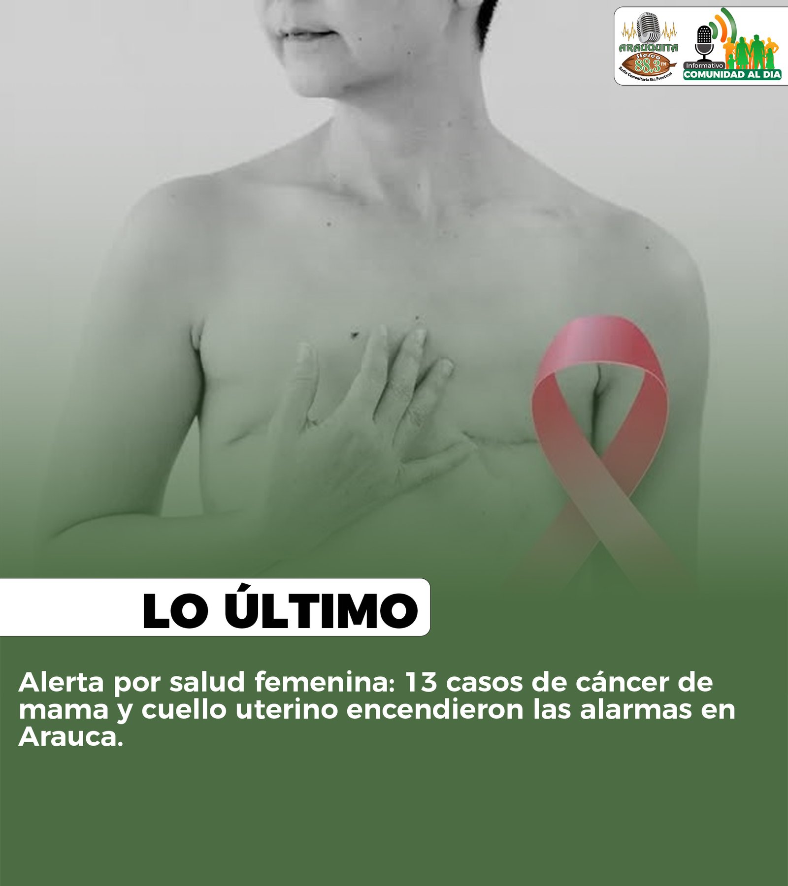 Arauca encendió una señal de alerta en materia de salud femenina. Según información entregada por la Unidad Administrativa Especial de Salud de Arauca (UAESA), en lo que va corrido del año se han reportado 13 casos de cáncer de mama y cáncer de cuello uterino en distintos municipios del departamento.