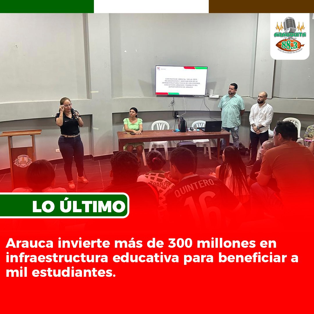 Con una inversión que supera los 300 millones de pesos, la Gobernación de Arauca avanza en el mejoramiento y adecuación de la infraestructura educativa en zonas urbanas y rurales, priorizando la calidad y seguridad de los entornos de aprendizaje.