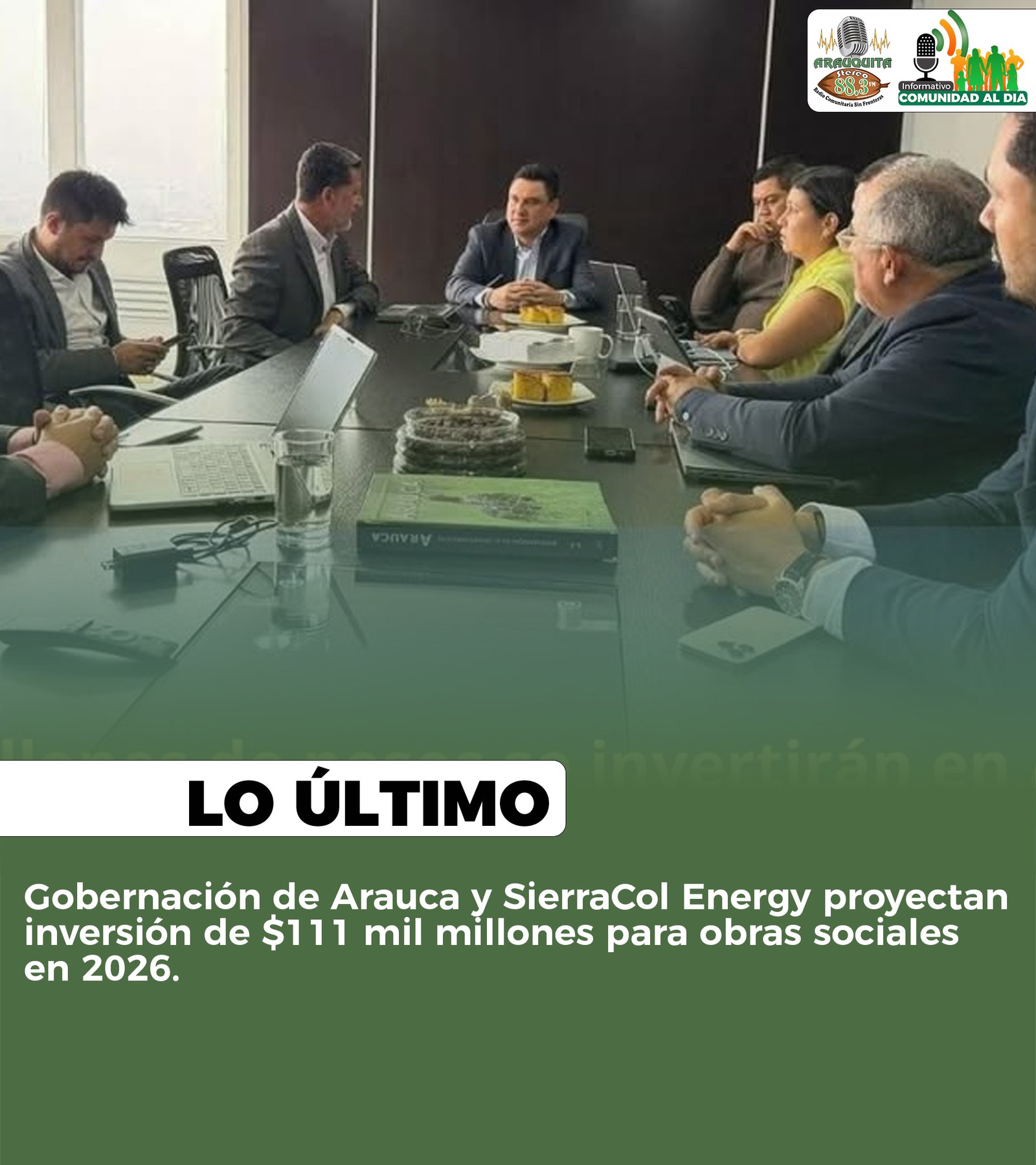 La Administración Departamental de Arauca lideró una mesa de trabajo con la empresa SierraCol Energy, en la que se avanzó en una articulación estratégica entre el sector público y privado, orientada a fortalecer la gestión conjunta y el desarrollo del departamento.