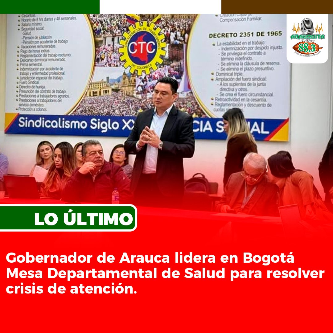 El gobernador Renson Martínez Prada se encuentra en Bogotá participando en la instalación de la Mesa Departamental de Salud, convocada con carácter urgente para abordar las graves dificultades de acceso y oportunidad en la prestación de servicios de salud que enfrenta la población araucana.