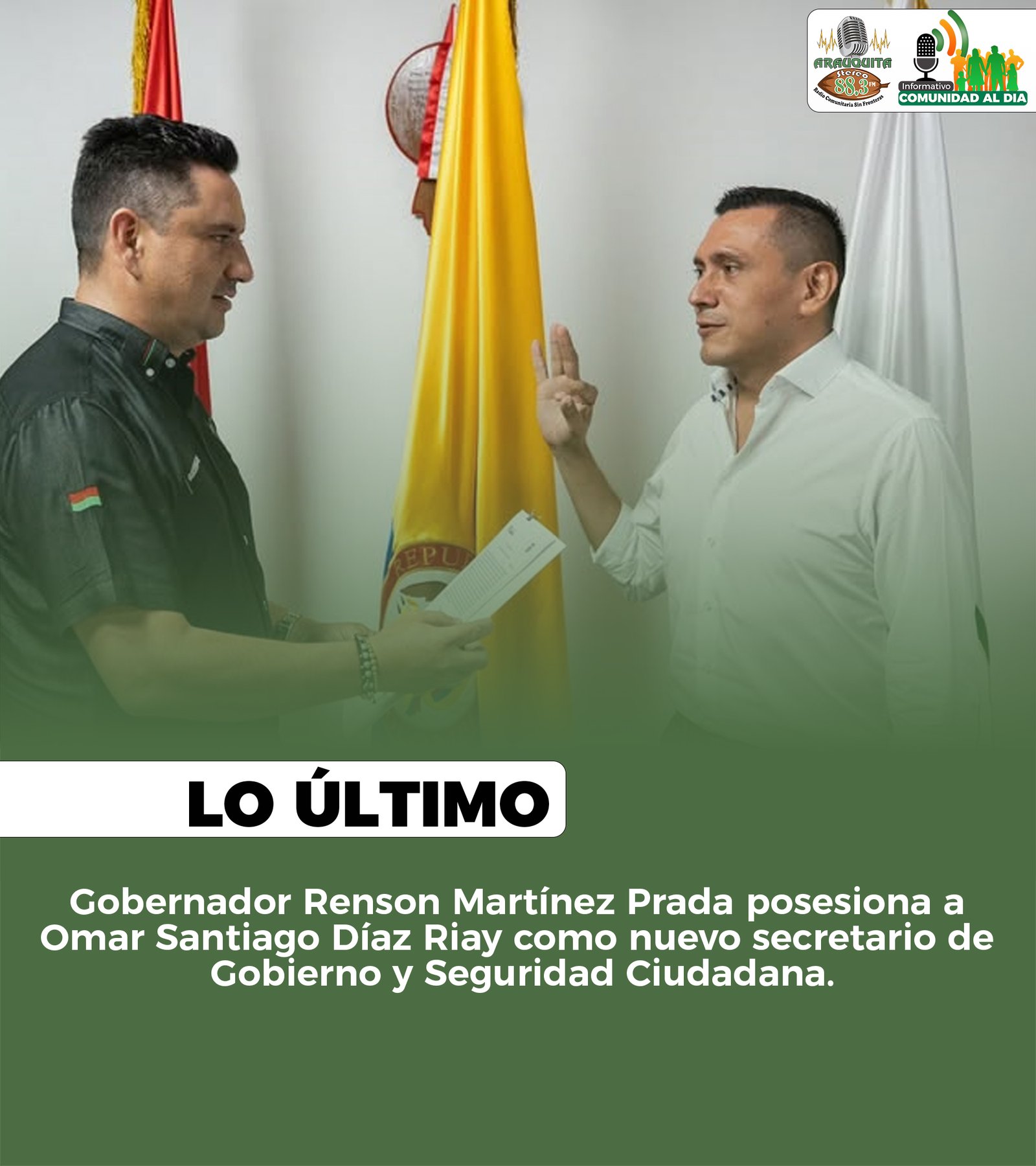 El gobernador de Arauca, Renson Martínez Prada, posesionó este martes a Omar Santiago Díaz Riay como nuevo secretario de Gobierno y Seguridad Ciudadana del departamento.