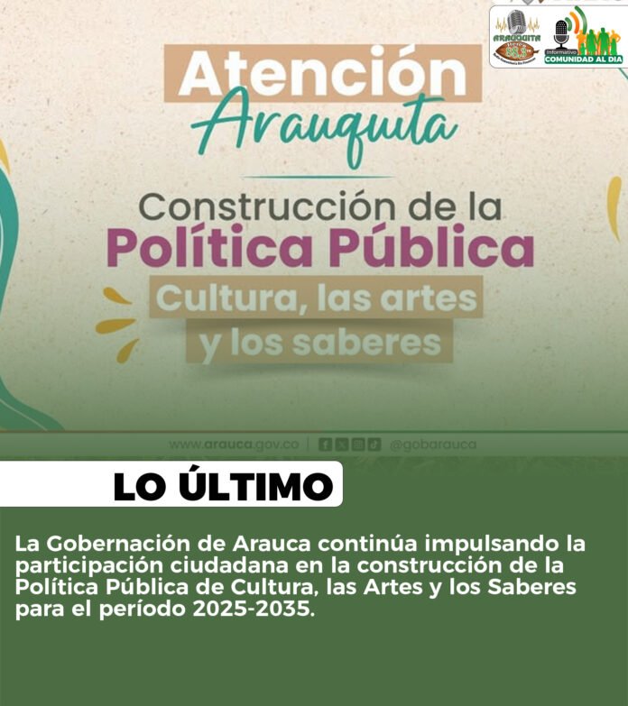La Gobernación de Arauca continúa impulsando la participación ciudadana en la construcción de la Política Pública de Cultura, las Artes y los Saberes para el período 2025-2035.