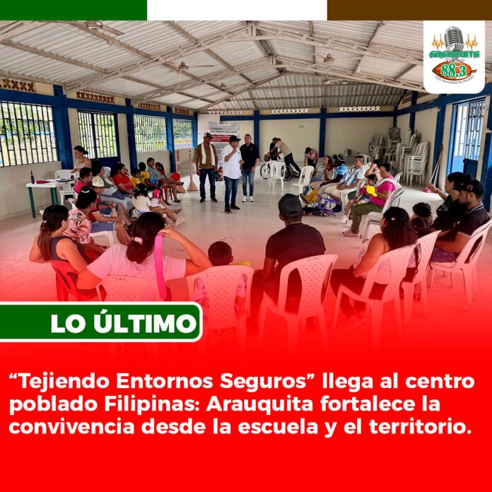 El centro poblado Filipinas, en el municipio de Arauquita, recibió este sábado la visita de la Secretaría de Gobierno de Arauca y la Oficina Asesora de Paz, en el marco del programa “Tejiendo Entornos Seguros”, una estrategia integral que promueve la convivencia familiar y comunitaria a partir de la escuela y el territorio.