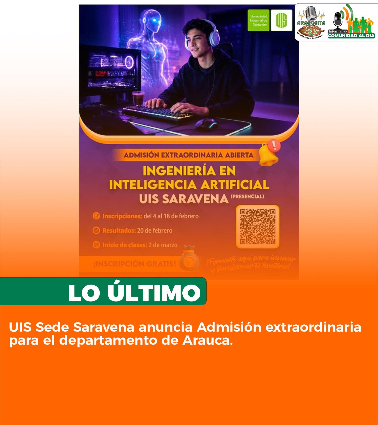 La Universidad Industrial de Santander informa que se encuentran abiertos los procesos de admisión extraordinaria, avalados por el Consejo Académico en sesión ordinaria, para el programa: