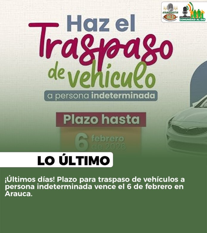 ¡Últimos días! Plazo para traspaso de vehículos a persona indeterminada vence el 6 de febrero en Arauca.